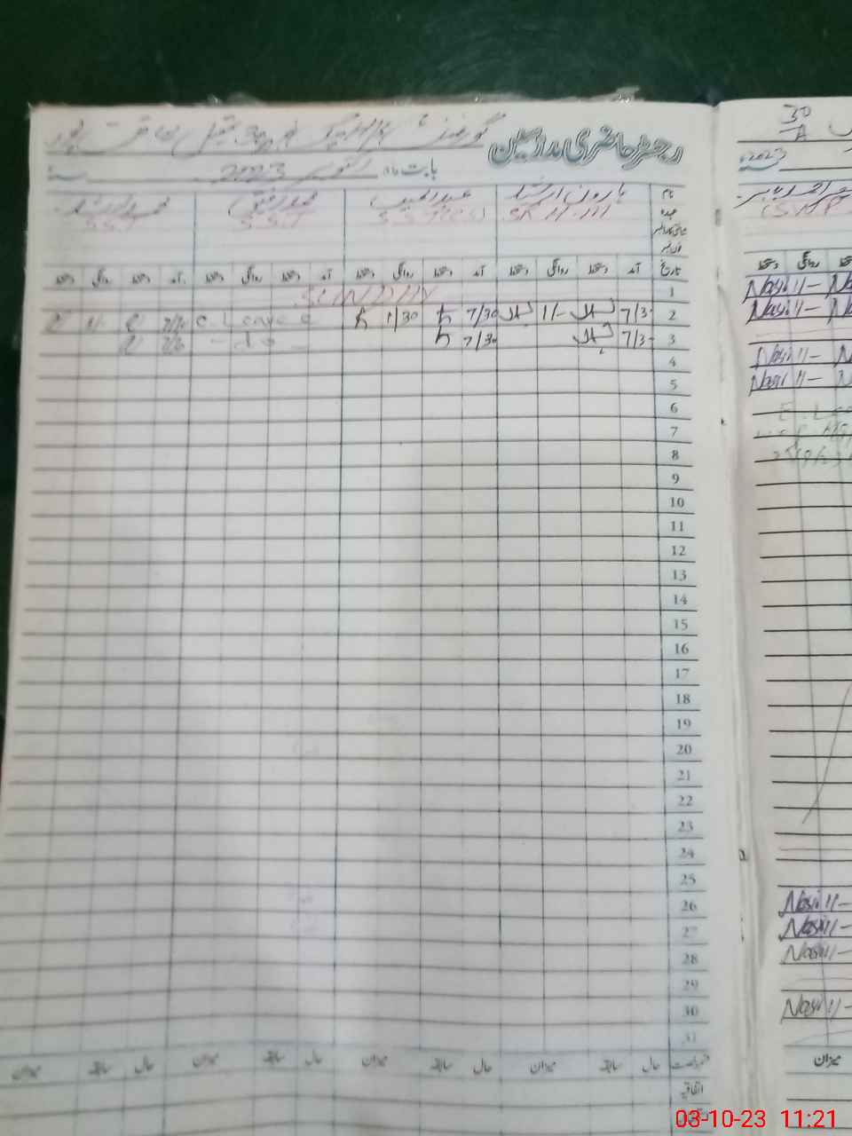 | CNIC | Full Name | Designation | R/C | Absence During Last Calender Month |