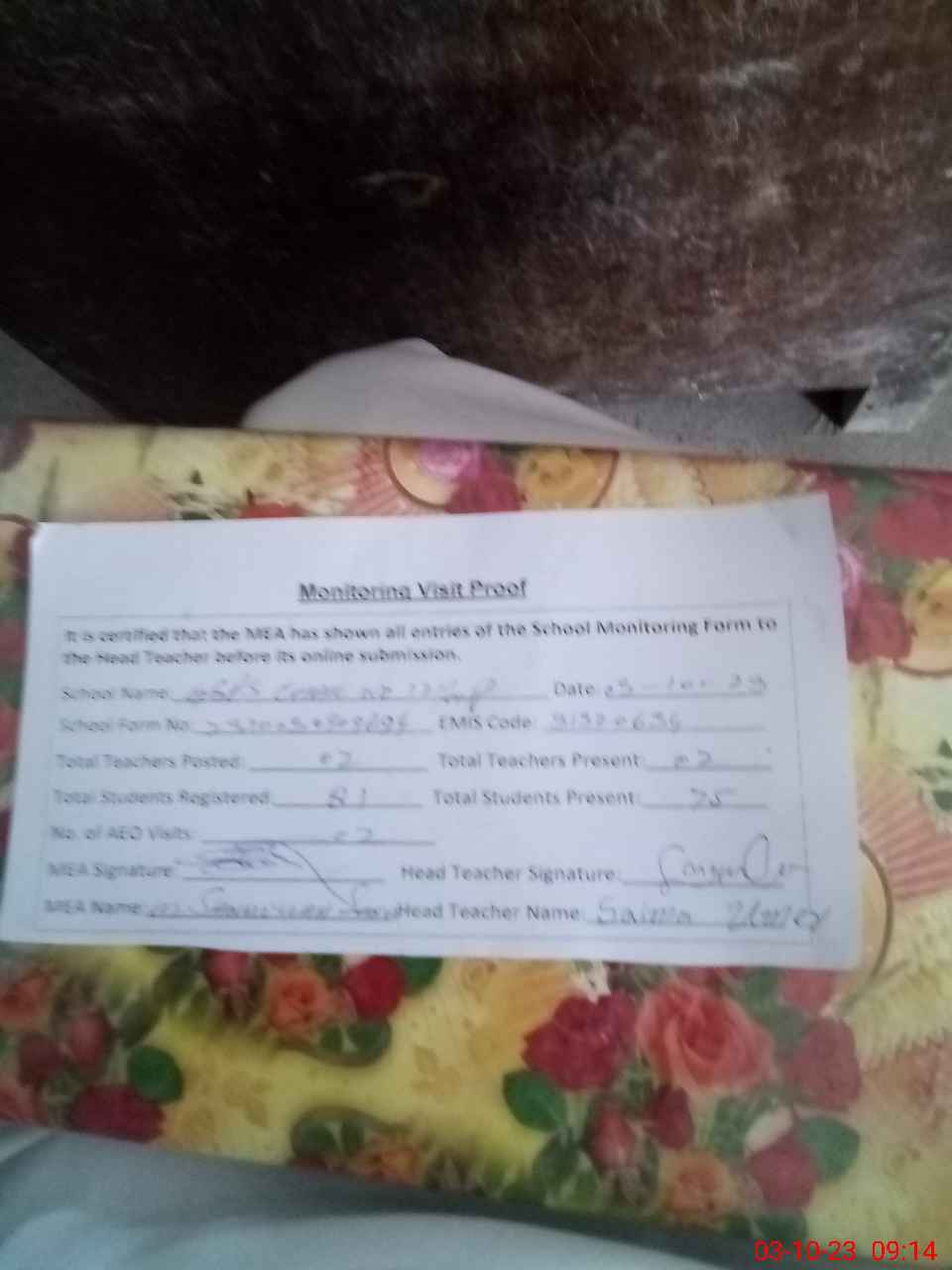 | Certified that this School was Inspected by the Undersigned MEA/DMO Today and the Information Stated Above is as Per Record. | |||||