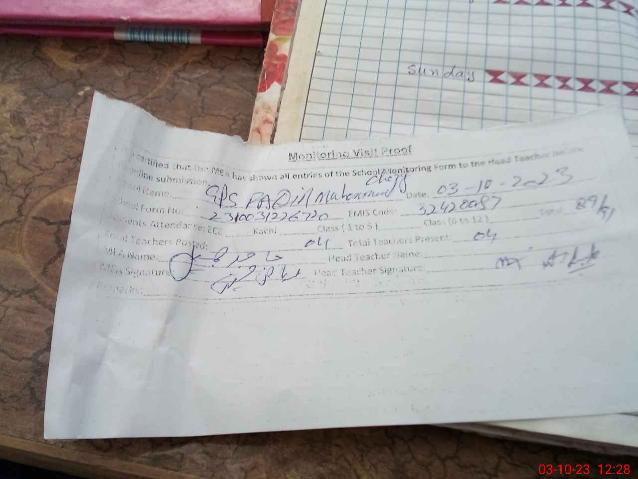 | EMIS Code: 32420087 | Name of School: GPS FAQIR MUHAMMAD CHANG | |||