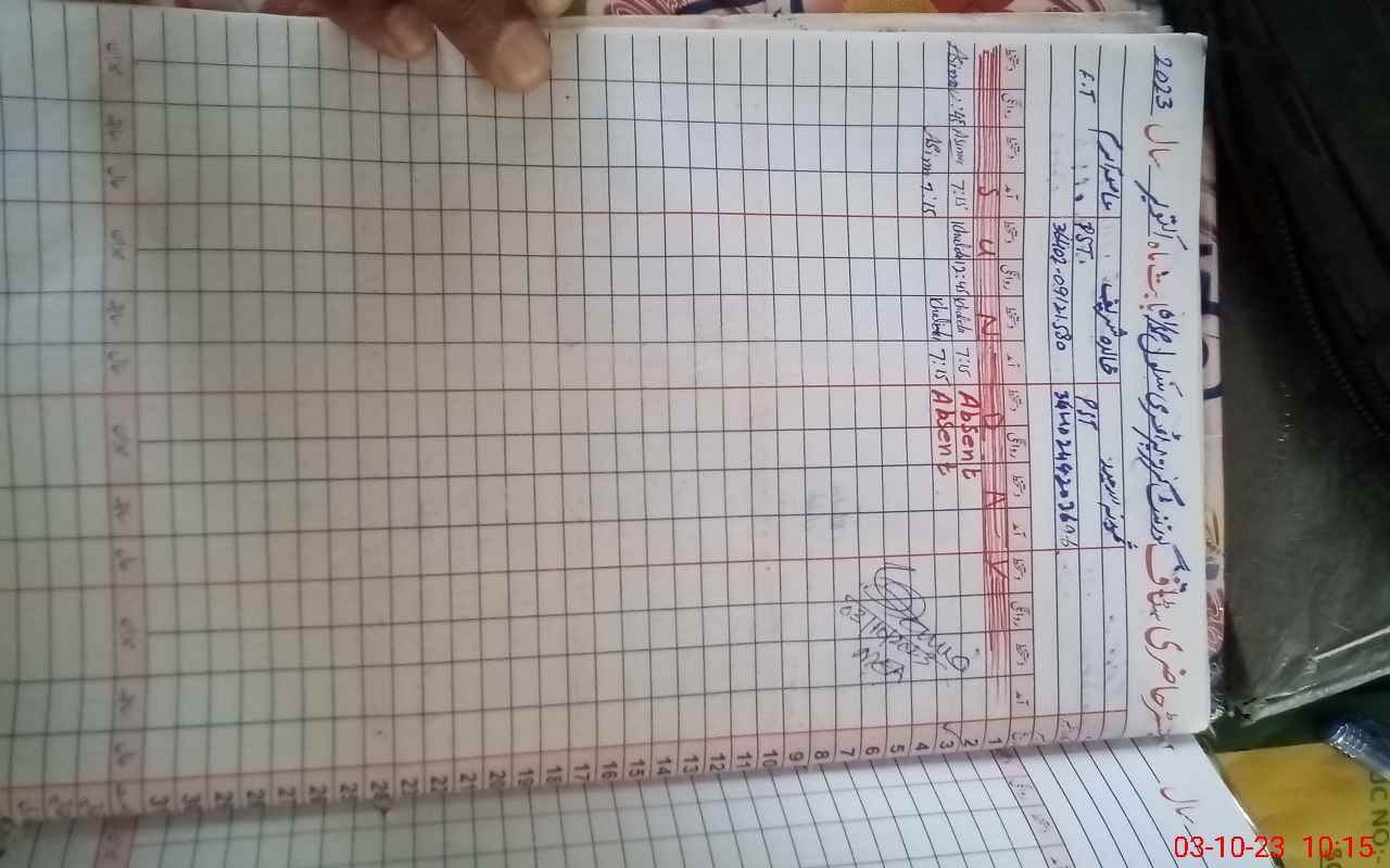 | 36**** | Sa**** Sa**** | 2 | 0 | 0 | 31 | 0 | 0 | 0 | 0 | 0 | 0 | Absent (Un-Authorized) | |
