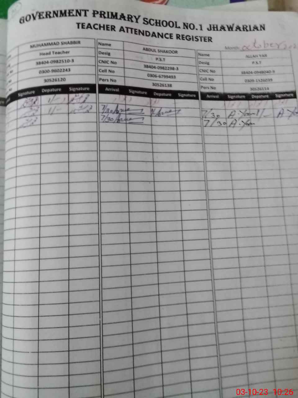 | Name: MU**** SA**** AS**** Designation: (School Headmaster's/Headmistress's) PST Phone/Cell Number: 03**** |