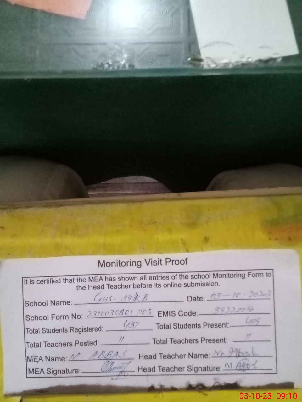 | EMIS Code: 39220016 | Name of School: GHS CHAK NO.34/KB | |||