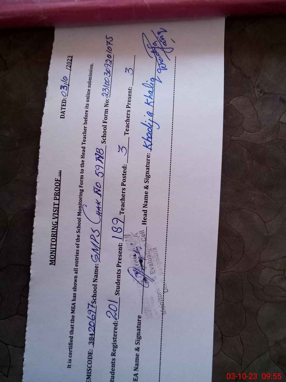 | Certified that this School was Inspected by the Undersigned MEA/DMO Today and the Information Stated Above is as Per Record. | |||||