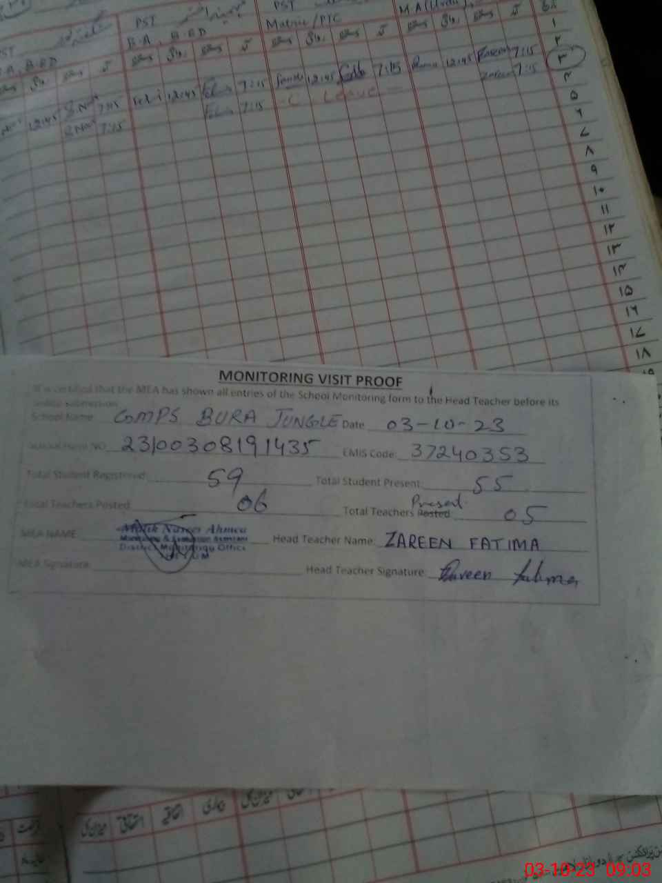 | Certified that this School was Inspected by the Undersigned MEA/DMO Today and the Information Stated Above is as Per Record. | |||||