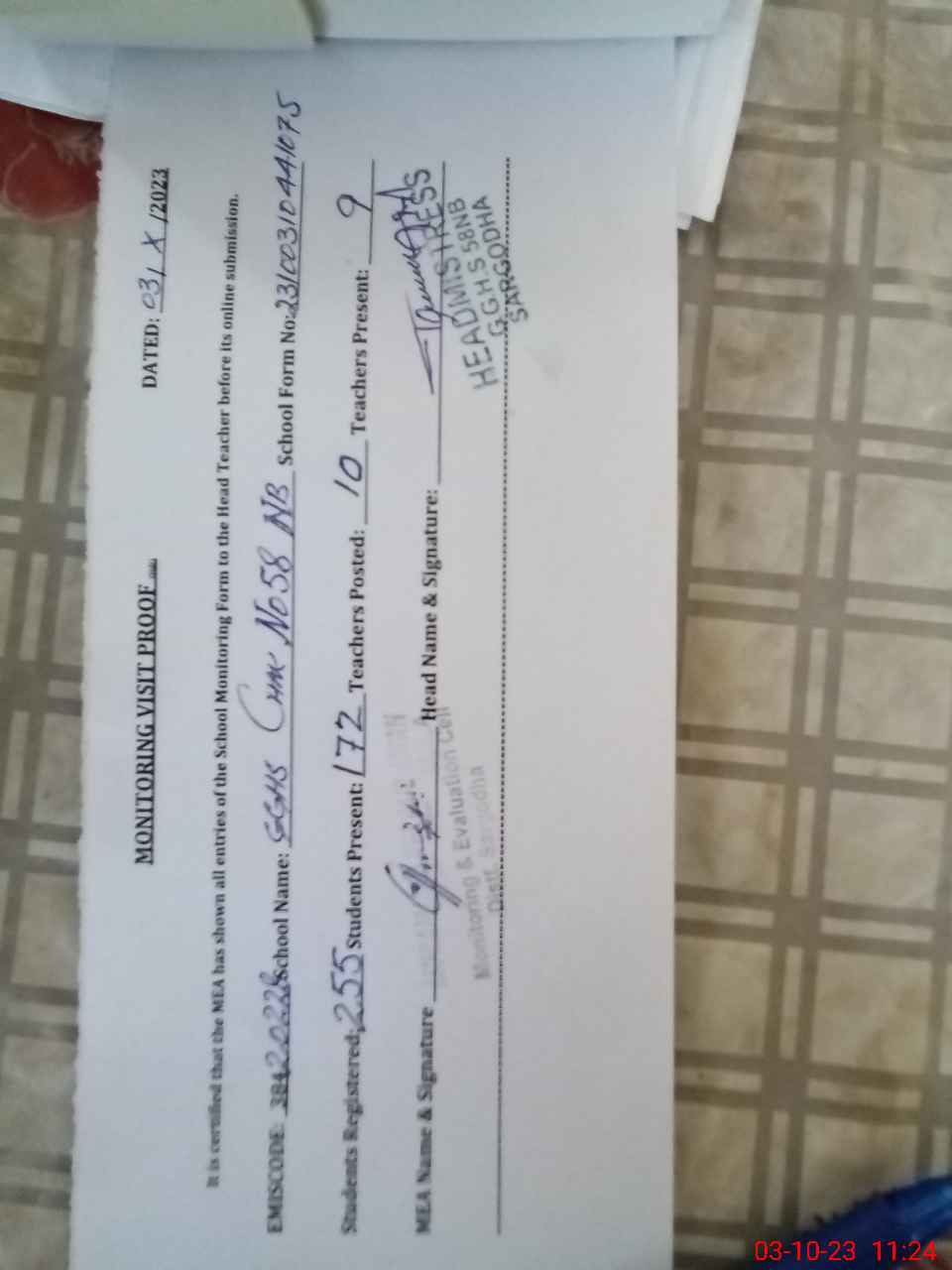| EMIS Code: 38420228 | Name of School: GGHS CHAK NO.58 NB | |||
