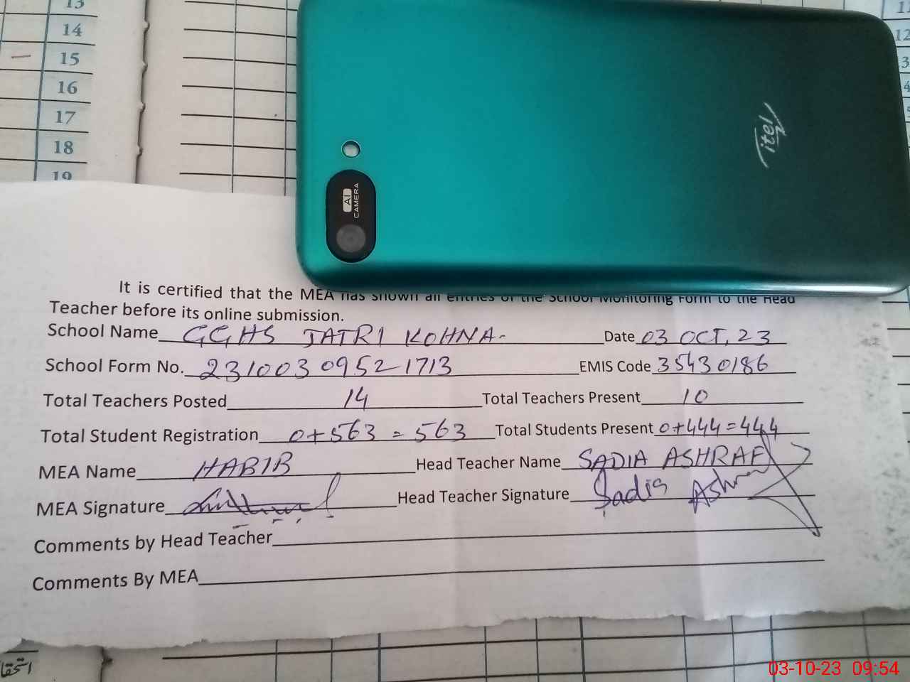 | Name: SA**** AS**** Designation: (School Headmaster's/Headmistress's) SST ( General ) Phone/Cell Number: 03**** |