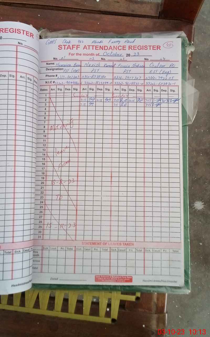 | Name: HU**** BA**** Designation: (School Headmaster's/Headmistress's) PST Phone/Cell Number: 03**** |