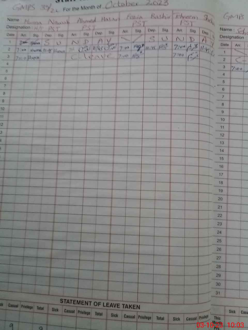 | Leave | Duty | Absent | Maternity | Medical | Ex- Pak |