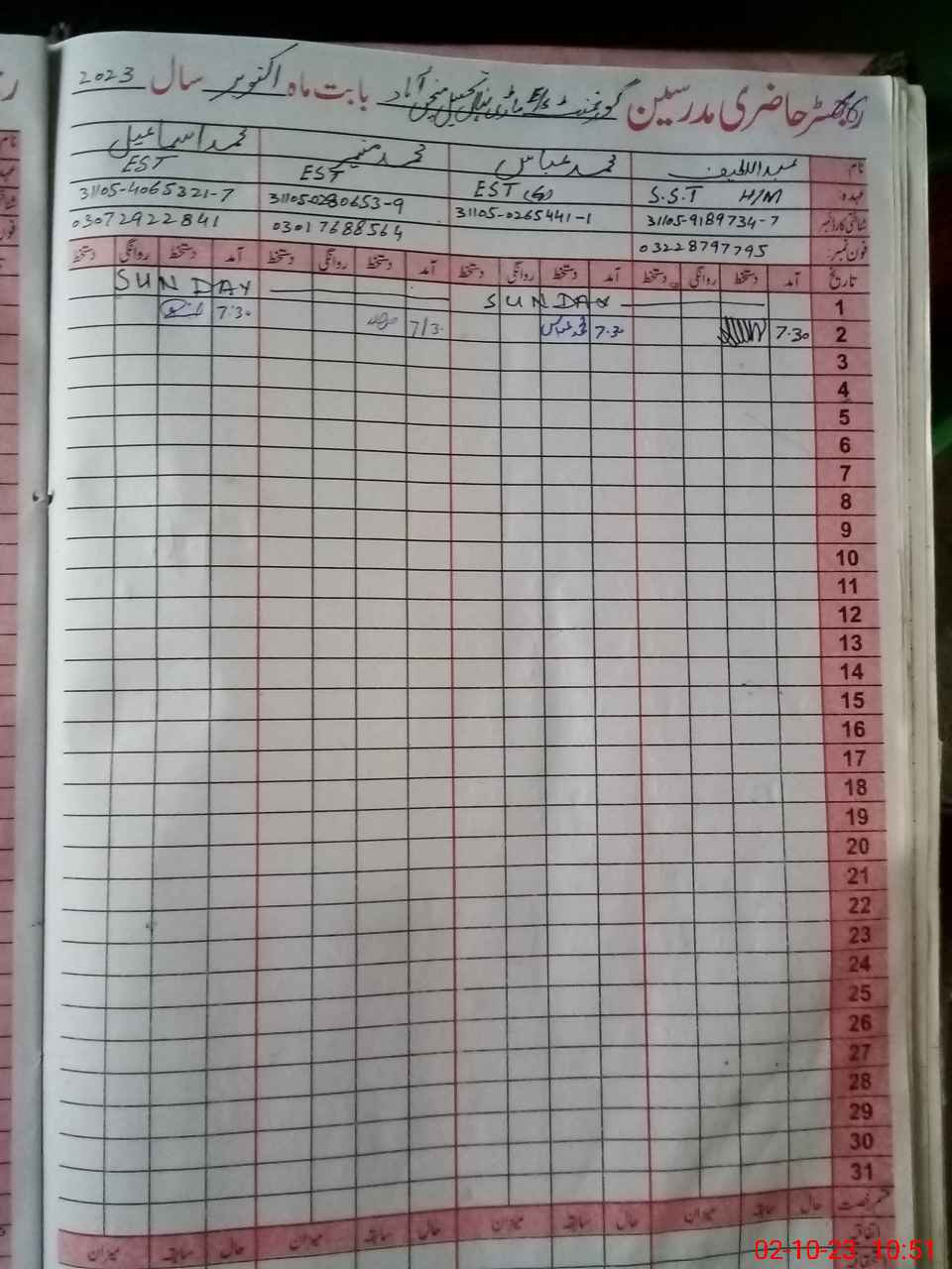 | Name: Ab**** La**** Designation: (School Headmaster's/Headmistress's) SST Phone/Cell Number: 03**** |