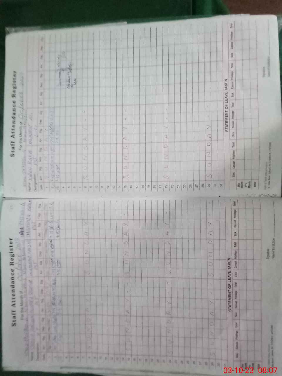 | Remarks (Use Separate Page if Required): Class IV named Muhabat Ali is on temporary duty and working as school guard since 01 October 2022 Further students list for online attendance found contrary to available record at school Lnd data still not uploaded therefore the test is not being contacted please | |||||