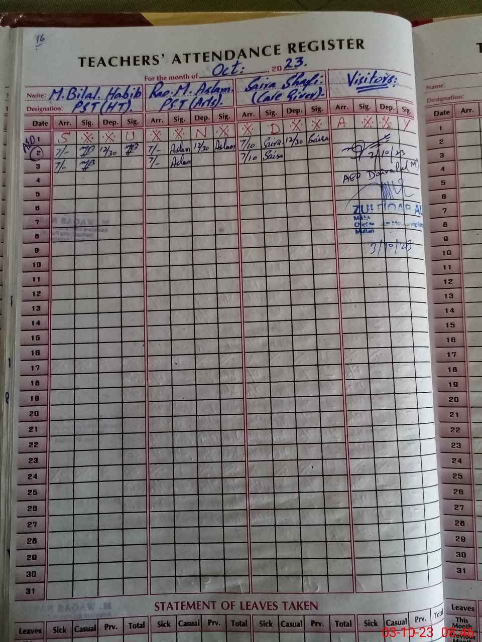 | Monitoring Date: 03-10-2023 | Start Time: 03-10-2023 08:11 AM | End Time: 03-10-2023 08:46 AM | Name of MEA: Zu**** Al**** | |