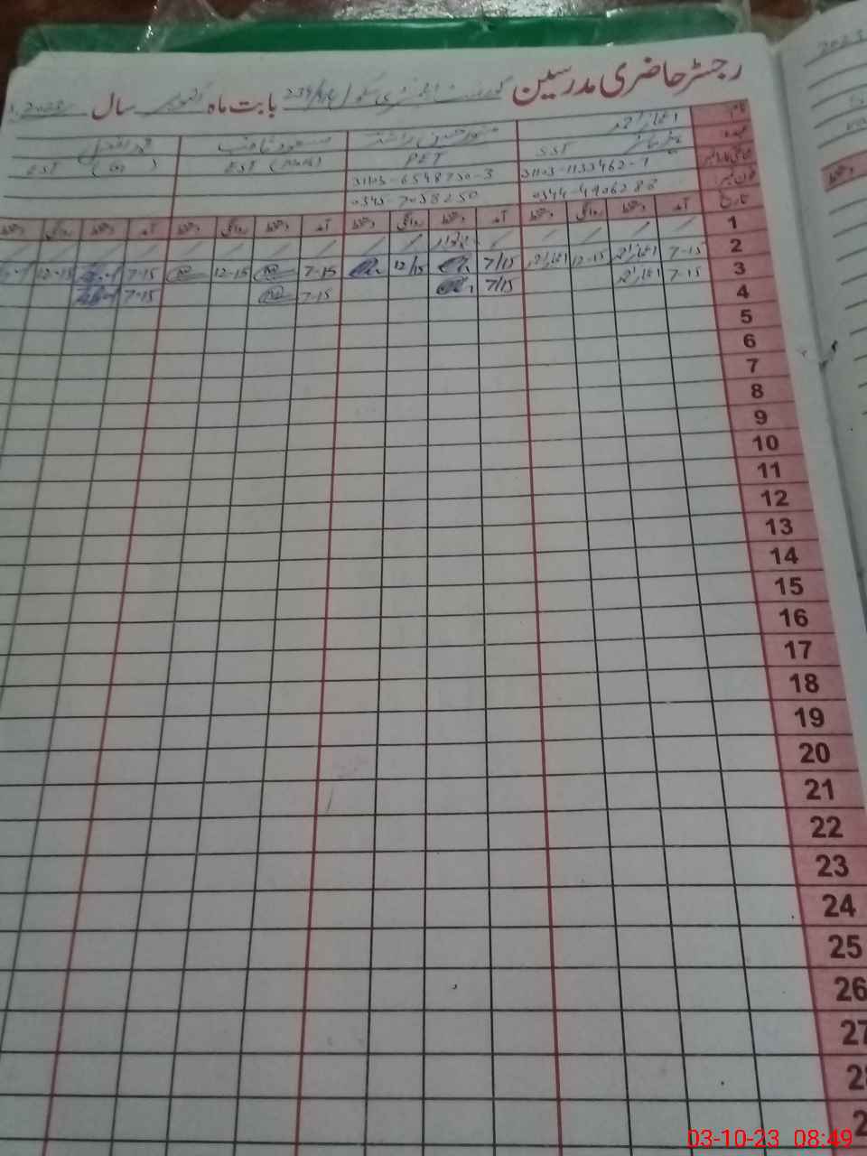 | Name: EJ**** AH**** Designation: (School Headmaster's/Headmistress's) S.S.T.(G) Phone/Cell Number: 03**** |