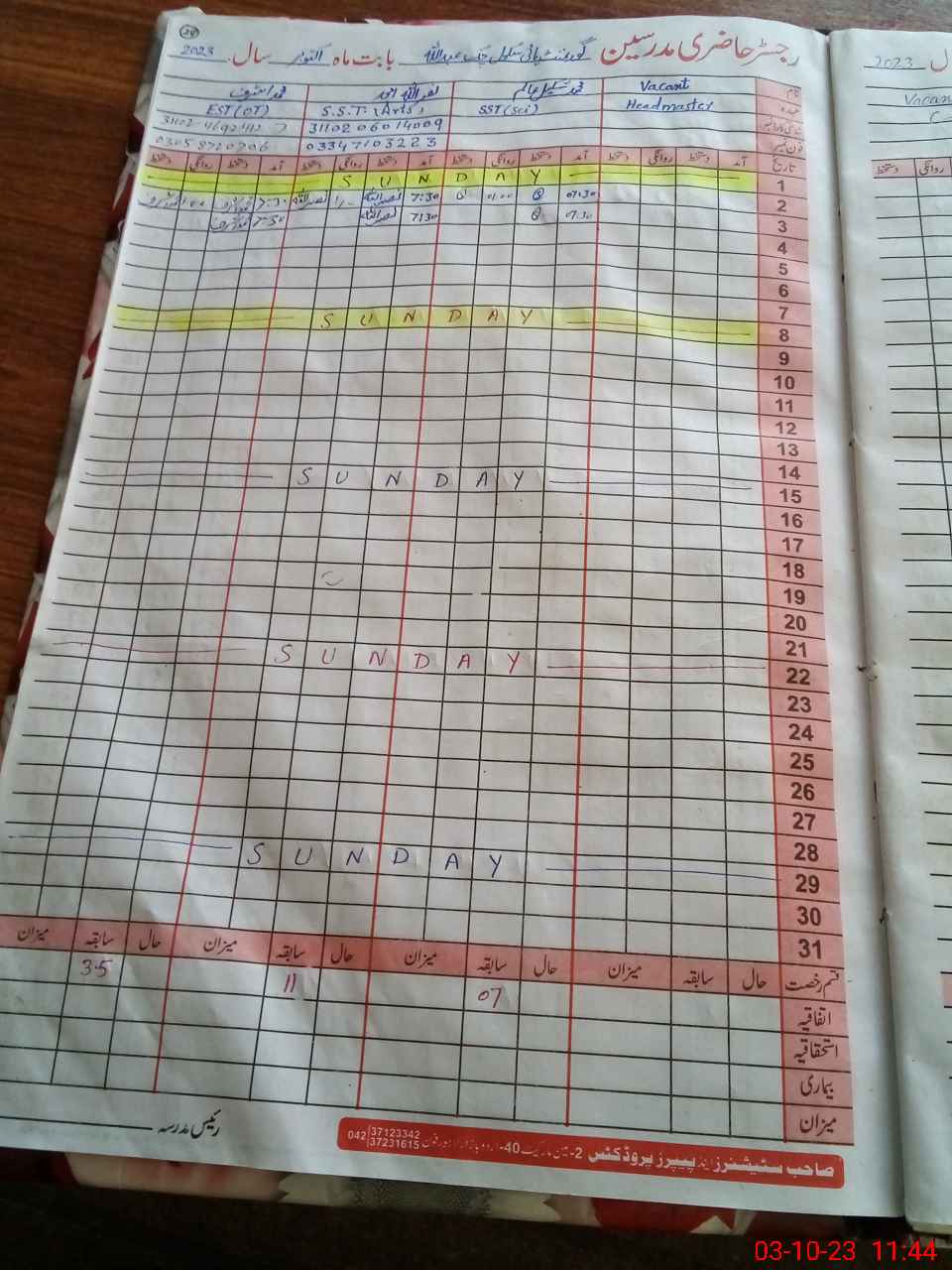 | Name: MU**** SH**** AL**** Designation: (School Headmaster's/Headmistress's) S.S.T.(SCI) Phone/Cell Number: 03**** |