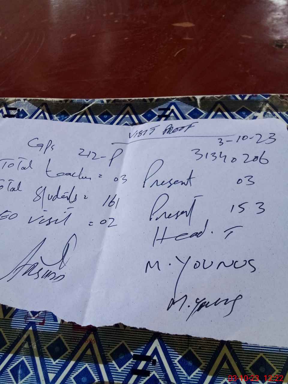 | EMIS Code: 31340206 | Name of School: GPS CHAK NO 212 P | |||