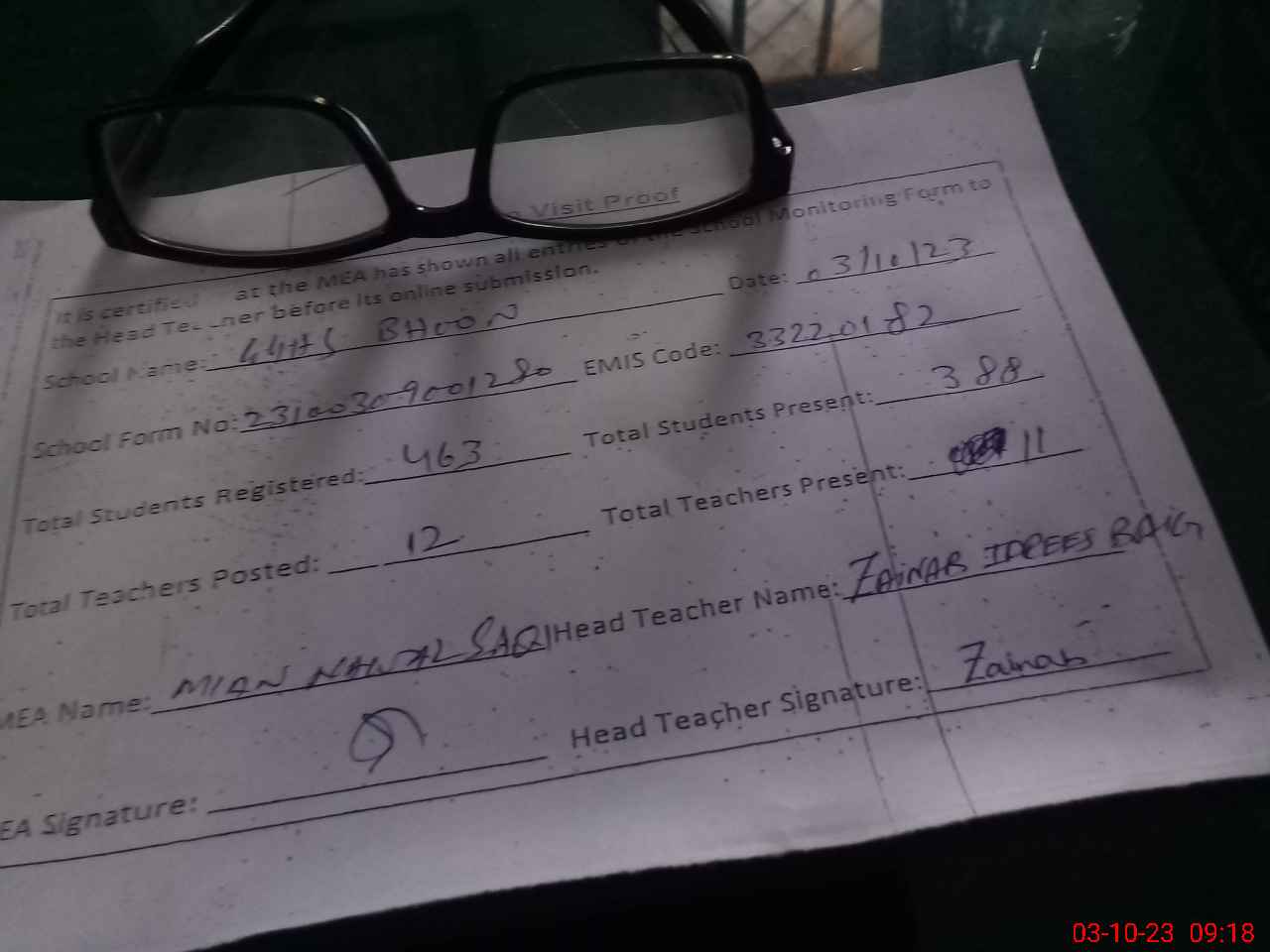 | Attendance Register | Head Teacher | MEA with School | Visit Proof |