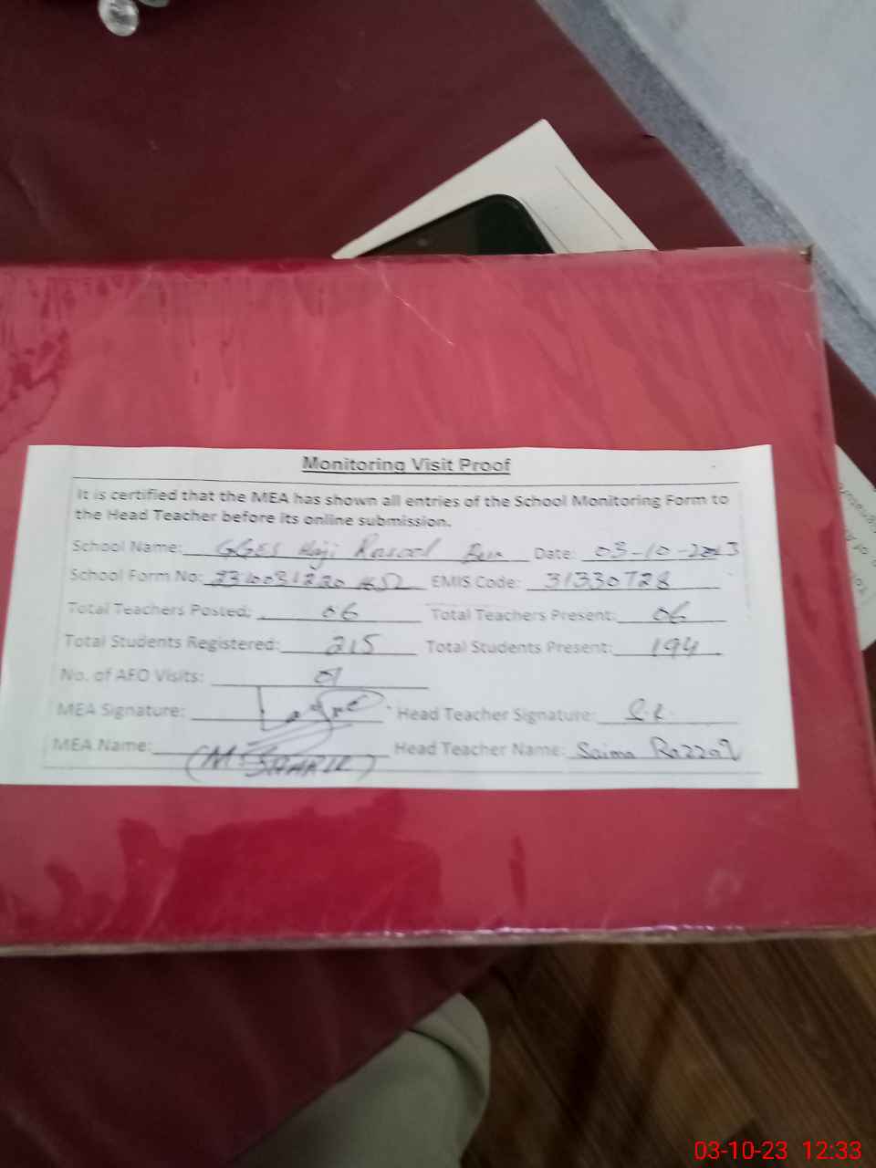 | EMIS Code: 31330728 | Name of School: GGES HAJI RASOOL BAKHSH | |||