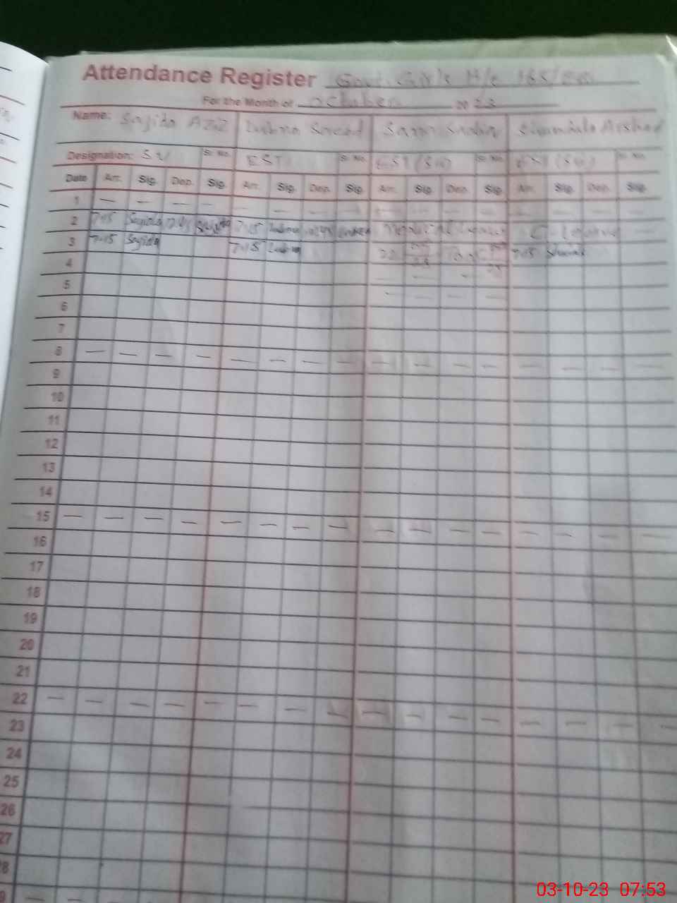 | 36**** | Sa**** Sa**** | 1 | 28 | 0 | 0 | 0 | 25 | 0 | 0 | 0 | 3 | Medical | |