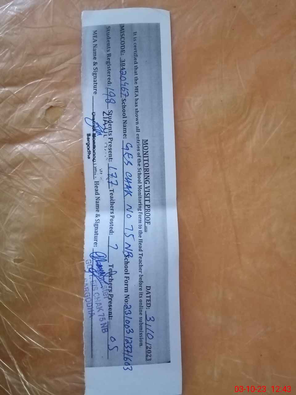 | EMIS Code: 38420467 | Name of School: GES CHAK NO.75 NB | |||