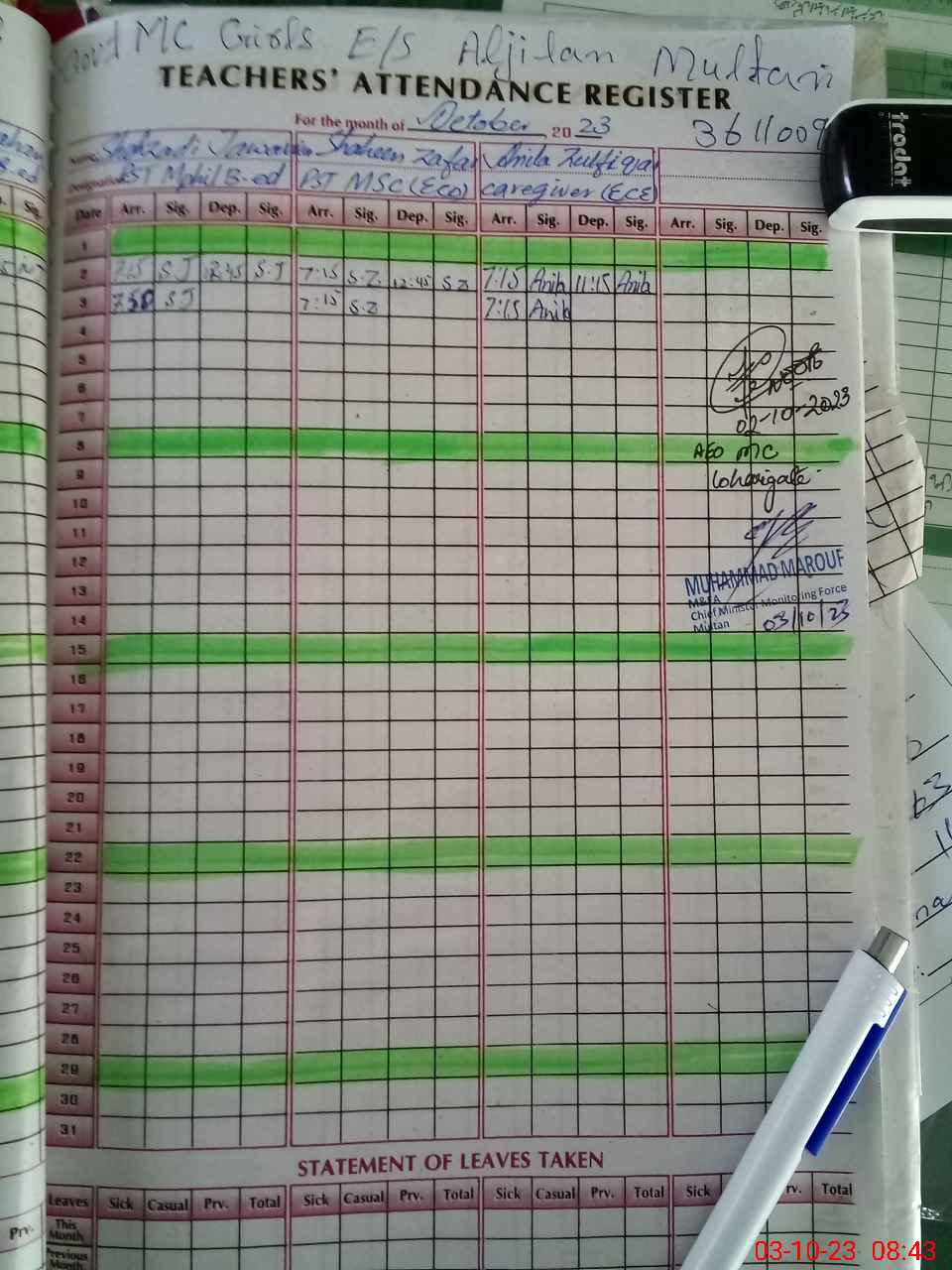 | EMIS Code: 36110098 | Name of School: GGES MC AL-JEELAN MULTAN | |||