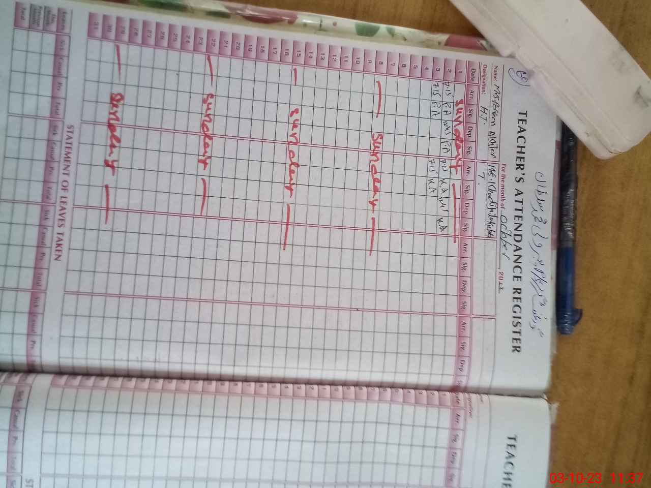 | CNIC | Full Name | Designation | R/C | Absence During Last Calender Month |