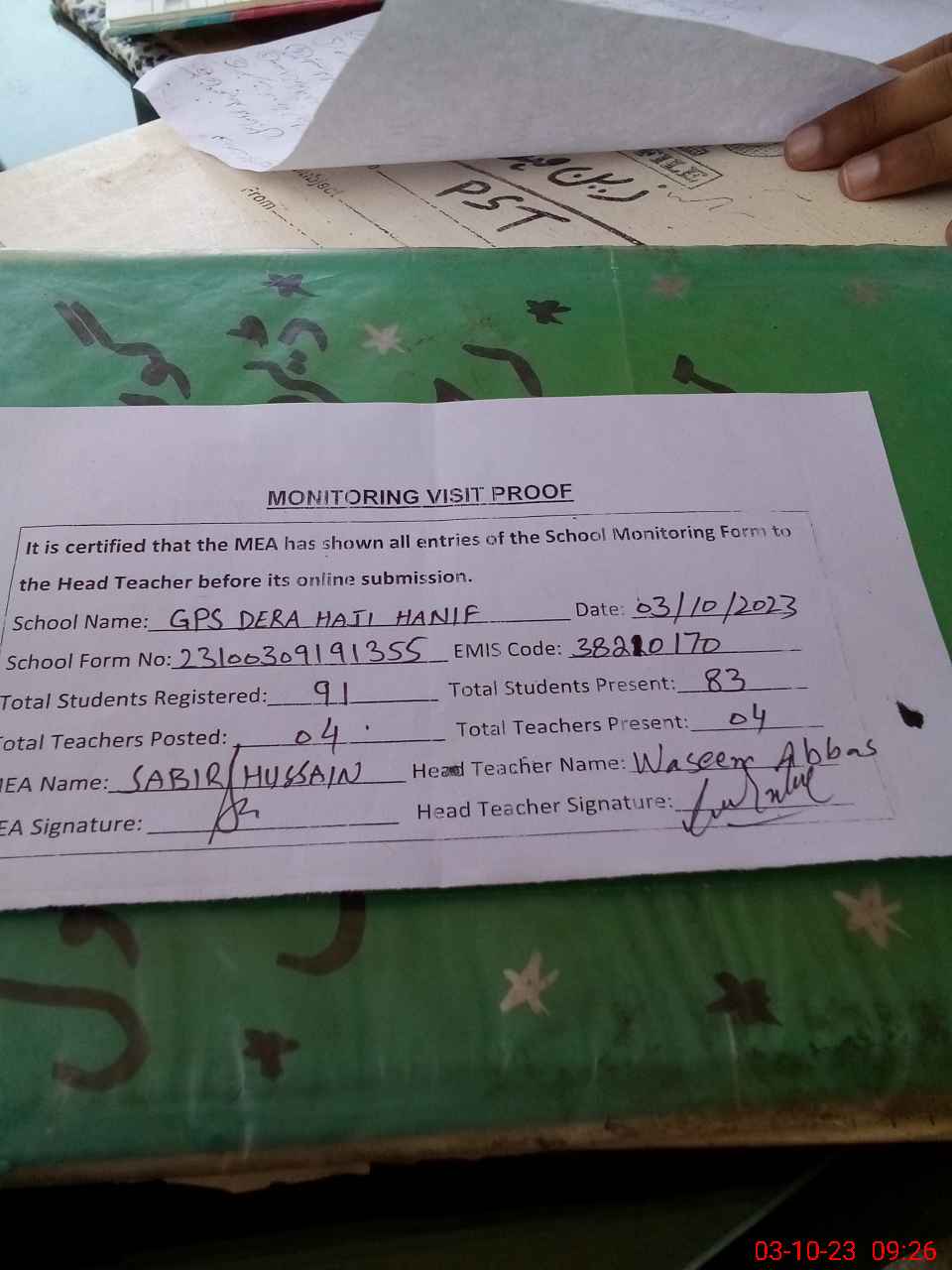 | EMIS Code: 38210170 | Name of School: GPS DERA HAJI HANIF | |||