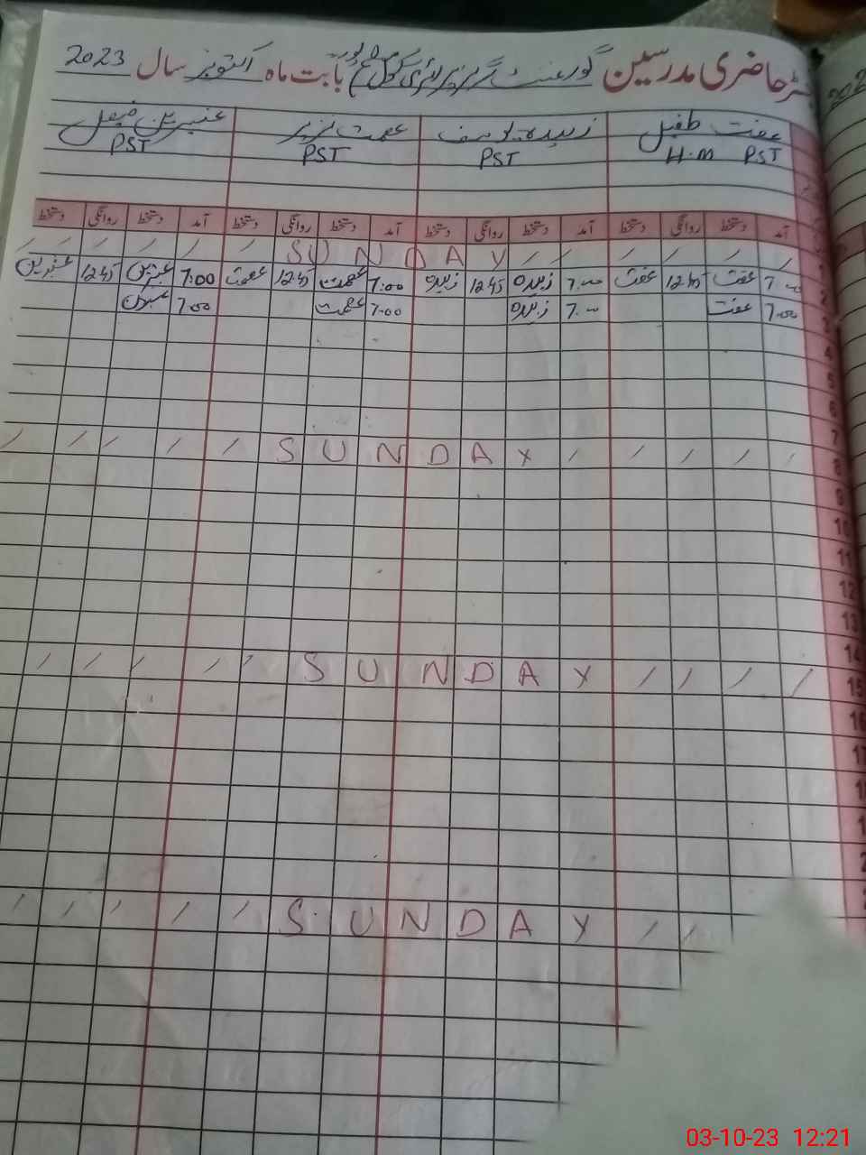 | CNIC | Full Name | Designation | R/C | Absence During Last Calender Month |