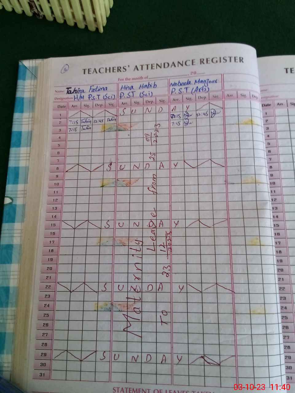 | Leave | Duty | Absent | Maternity | Medical | Ex- Pak |