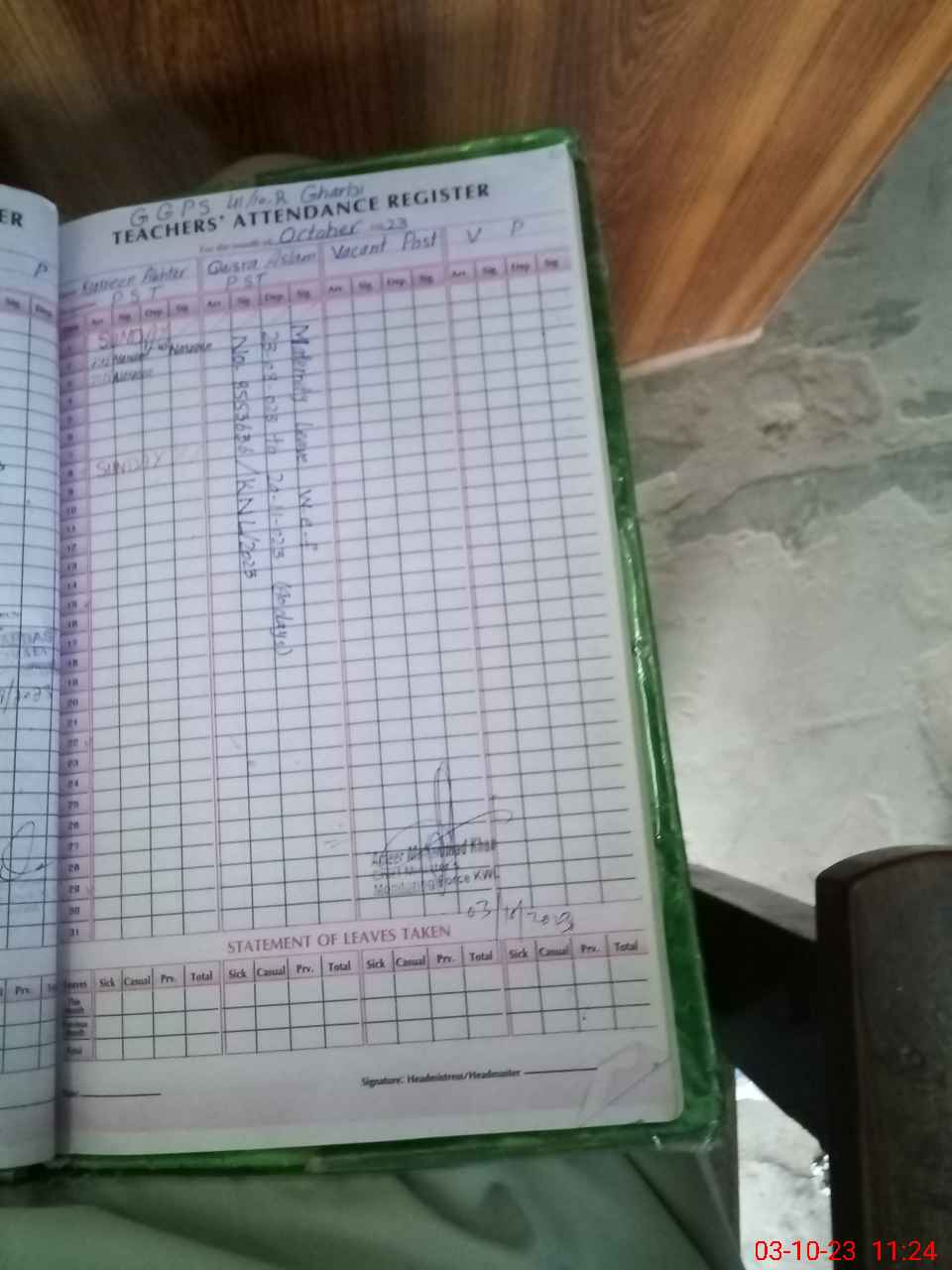 | Leave | Duty | Absent | Maternity | Medical | Ex- Pak |