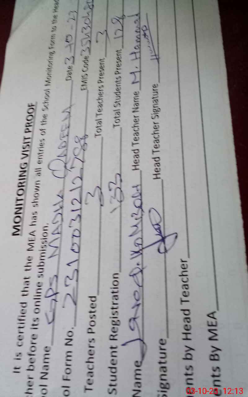 | Name: Mu**** Ha**** Designation: (School Headmaster's/Headmistress's) PST Phone/Cell Number: 03**** |