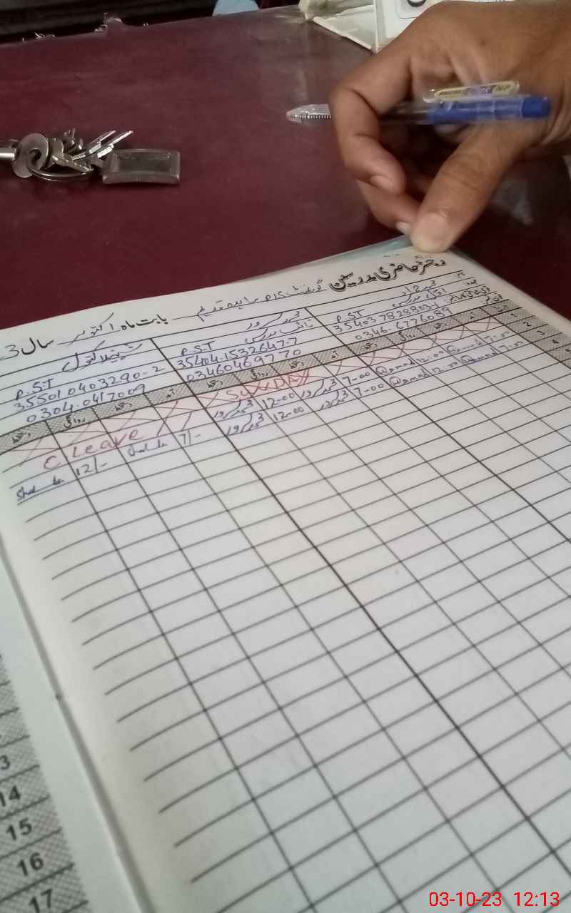 | CNIC | Full Name | Designation | R/C | Absence During Last Calender Month |