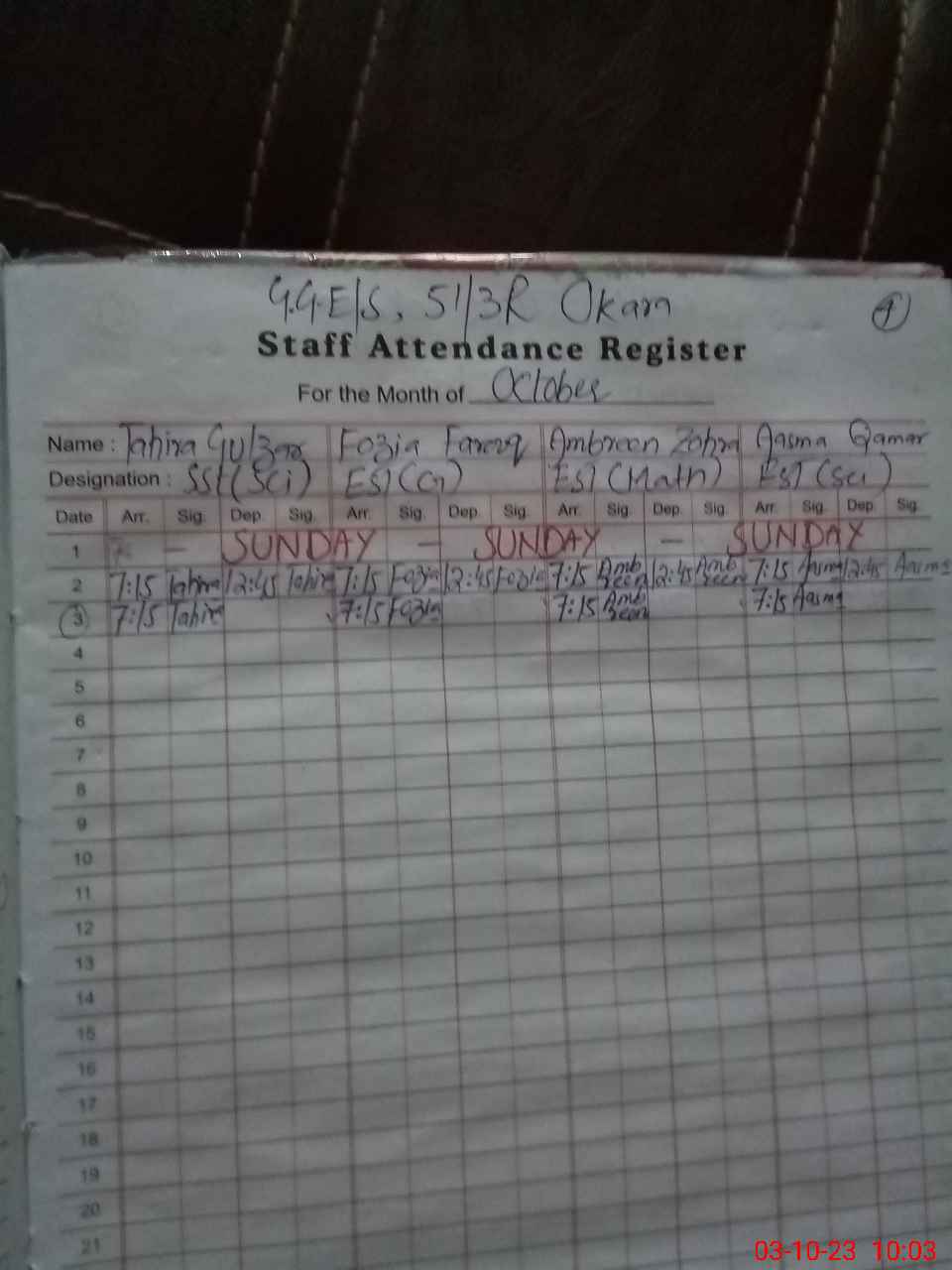 | Name: Fo**** Fa**** Designation: (School Headmaster's/Headmistress's) EST Phone/Cell Number: 03**** |