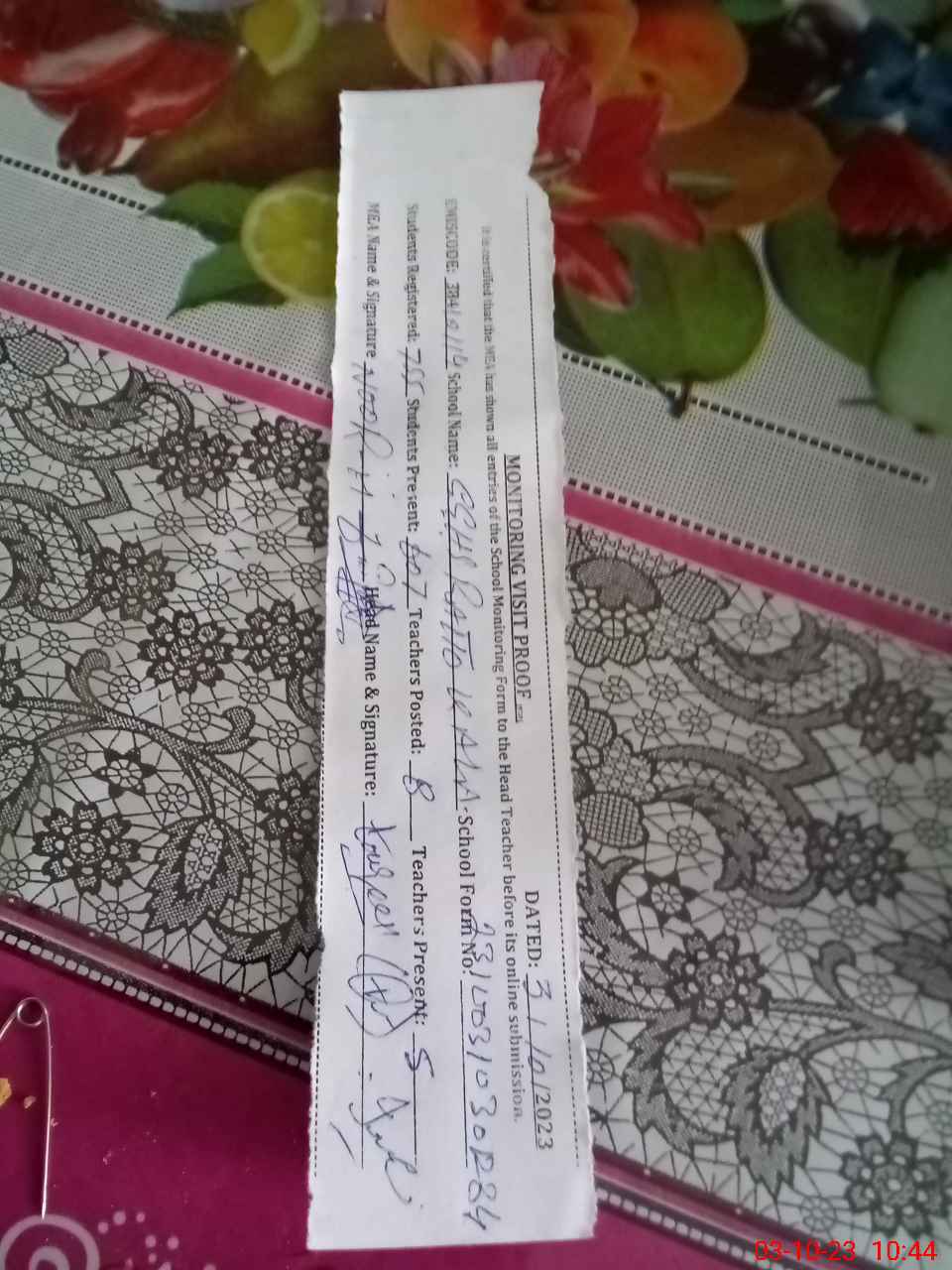 | Attendance Register | Head Teacher | MEA with School | Visit Proof |