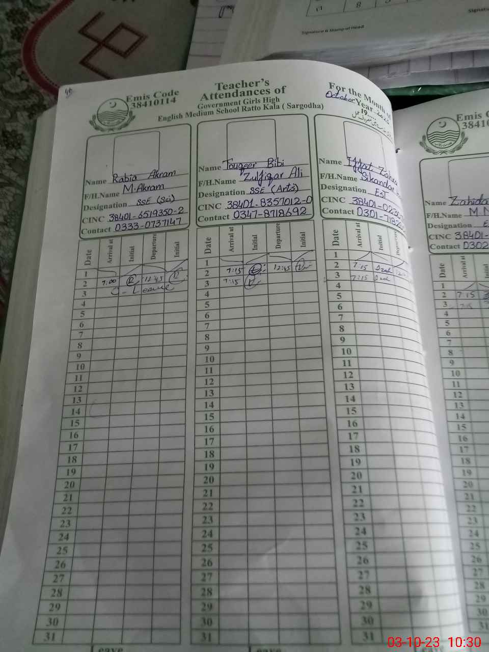 | Name: Ra**** Ak**** Designation: (School Headmaster's/Headmistress's) I/C HM Phone/Cell Number: 03**** |