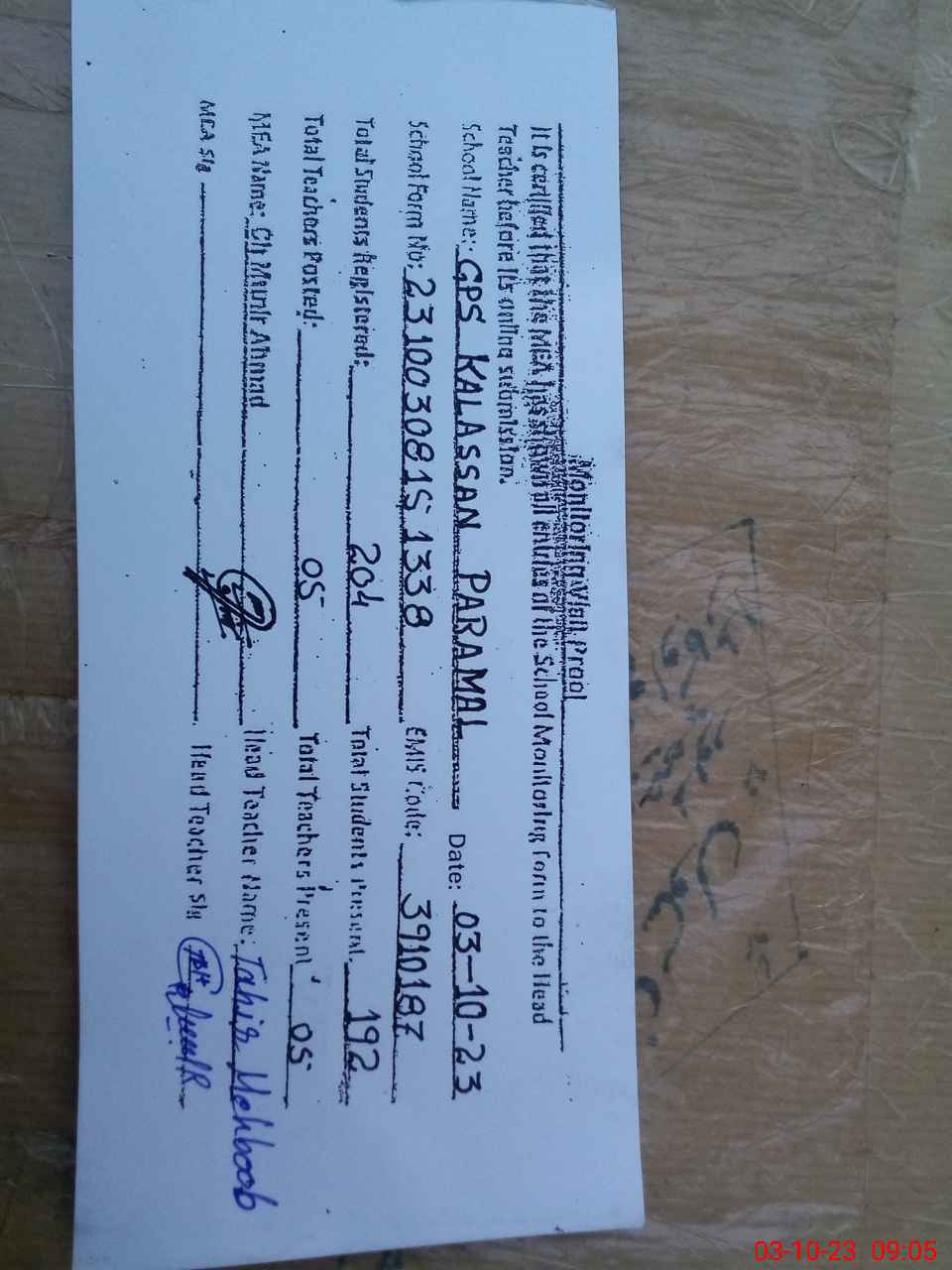 | EMIS Code: 39310187 | Name of School: GPS KALASSAN PARAMAL | |||