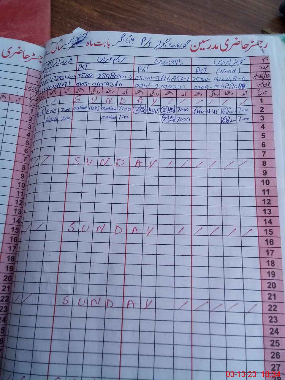 | CNIC | Full Name | Designation | R/C | Absence During Last Calender Month |
