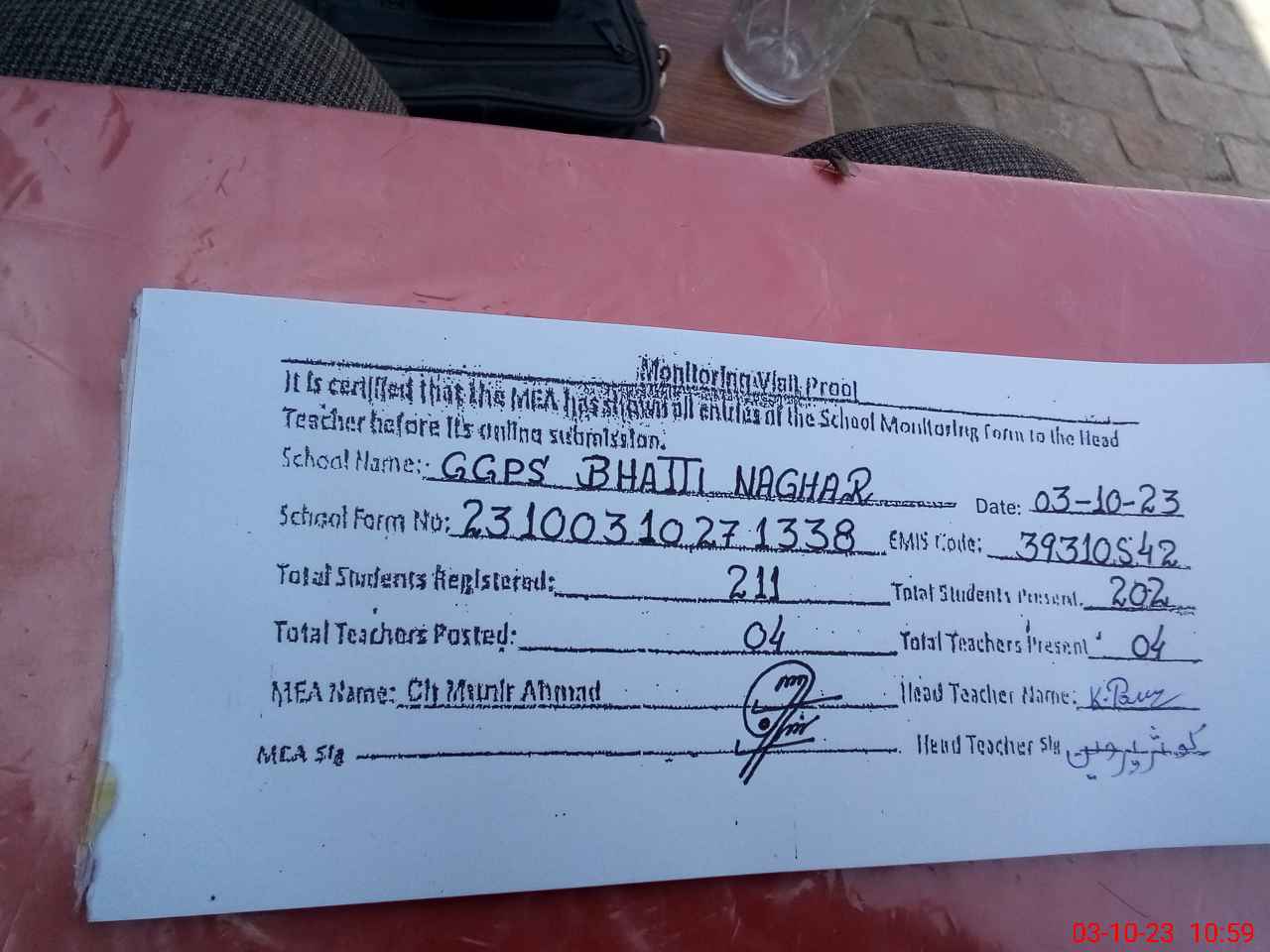| EMIS Code: 39310542 | Name of School: GGPS BHATTI NAGAR | |||