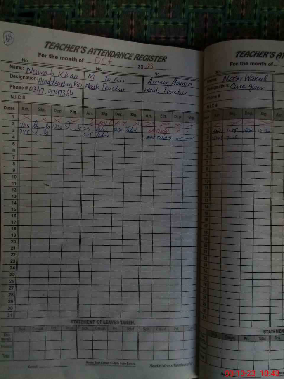 | Name: Mu**** Ta**** Designation: (School Headmaster's/Headmistress's) HEADMASTER Phone/Cell Number: 03**** |