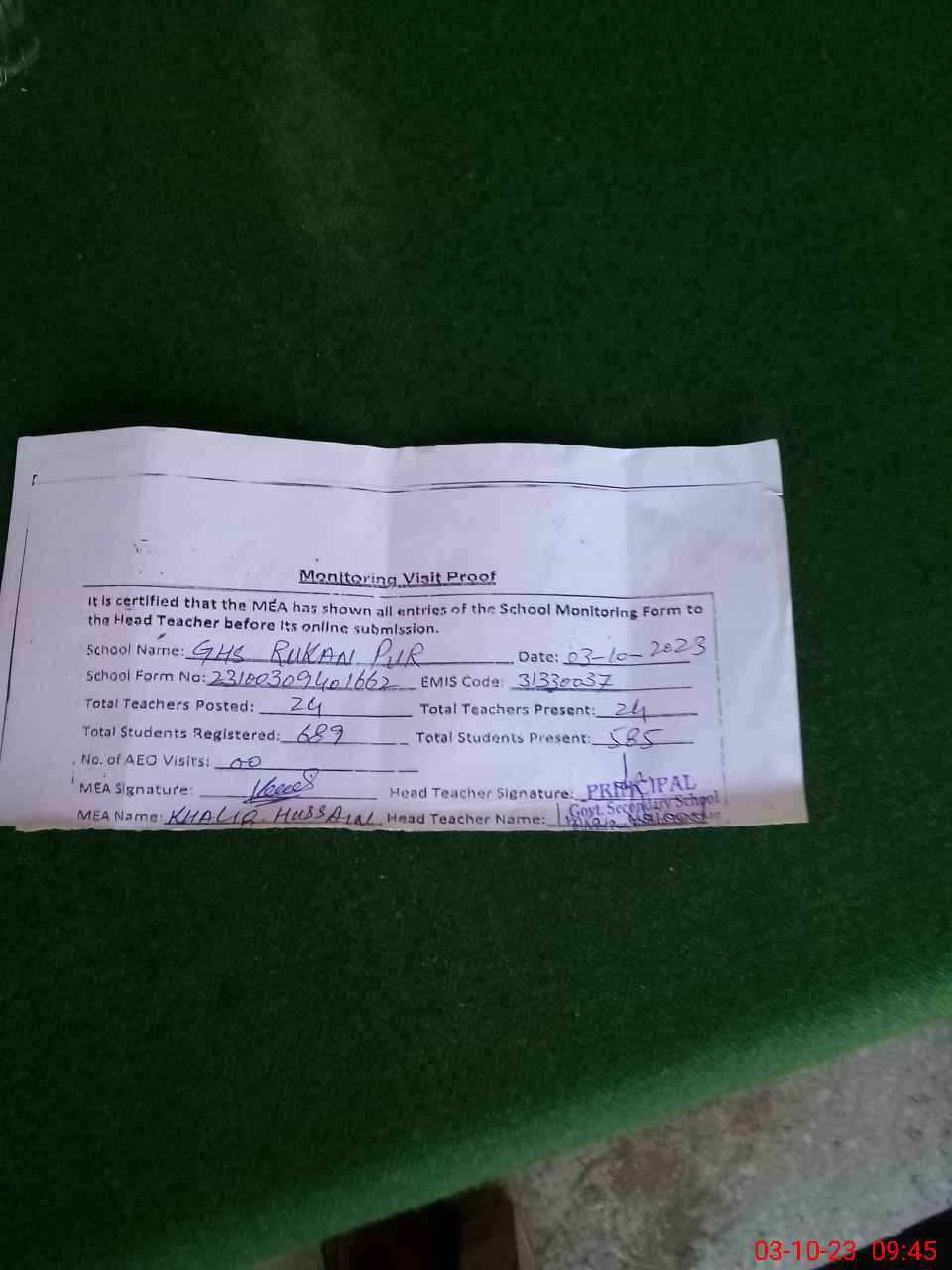 | EMIS Code: 31330037 | Name of School: GHS RUKEN PUR | |||
