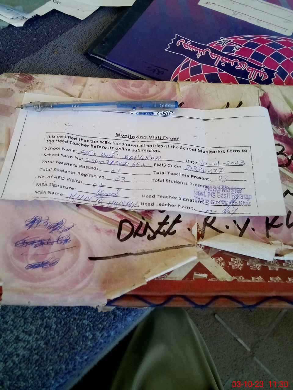 | Attendance Register | Head Teacher | MEA with School | Visit Proof |