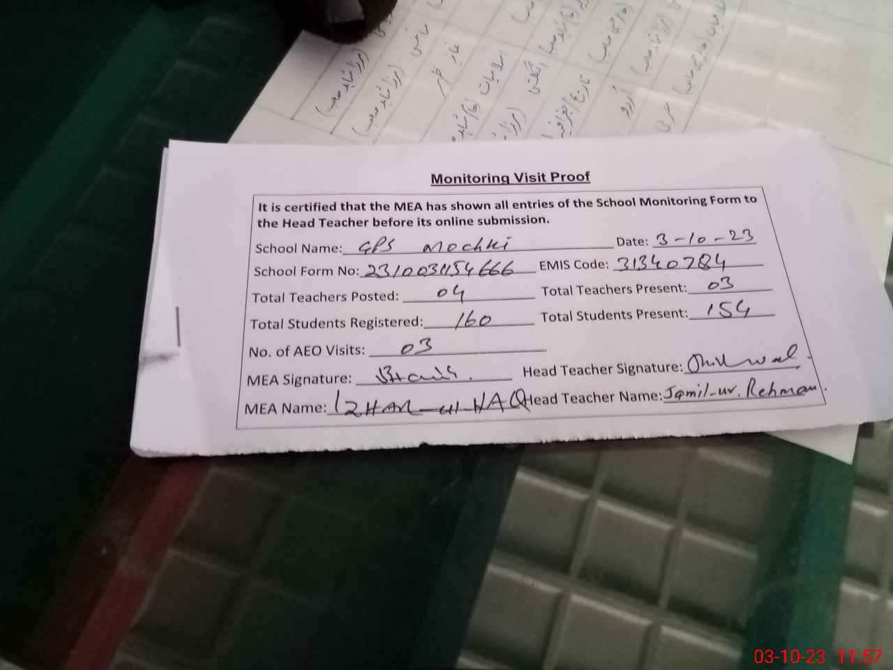 | EMIS Code: 31340784 | Name of School: GPS MOCHKI | |||