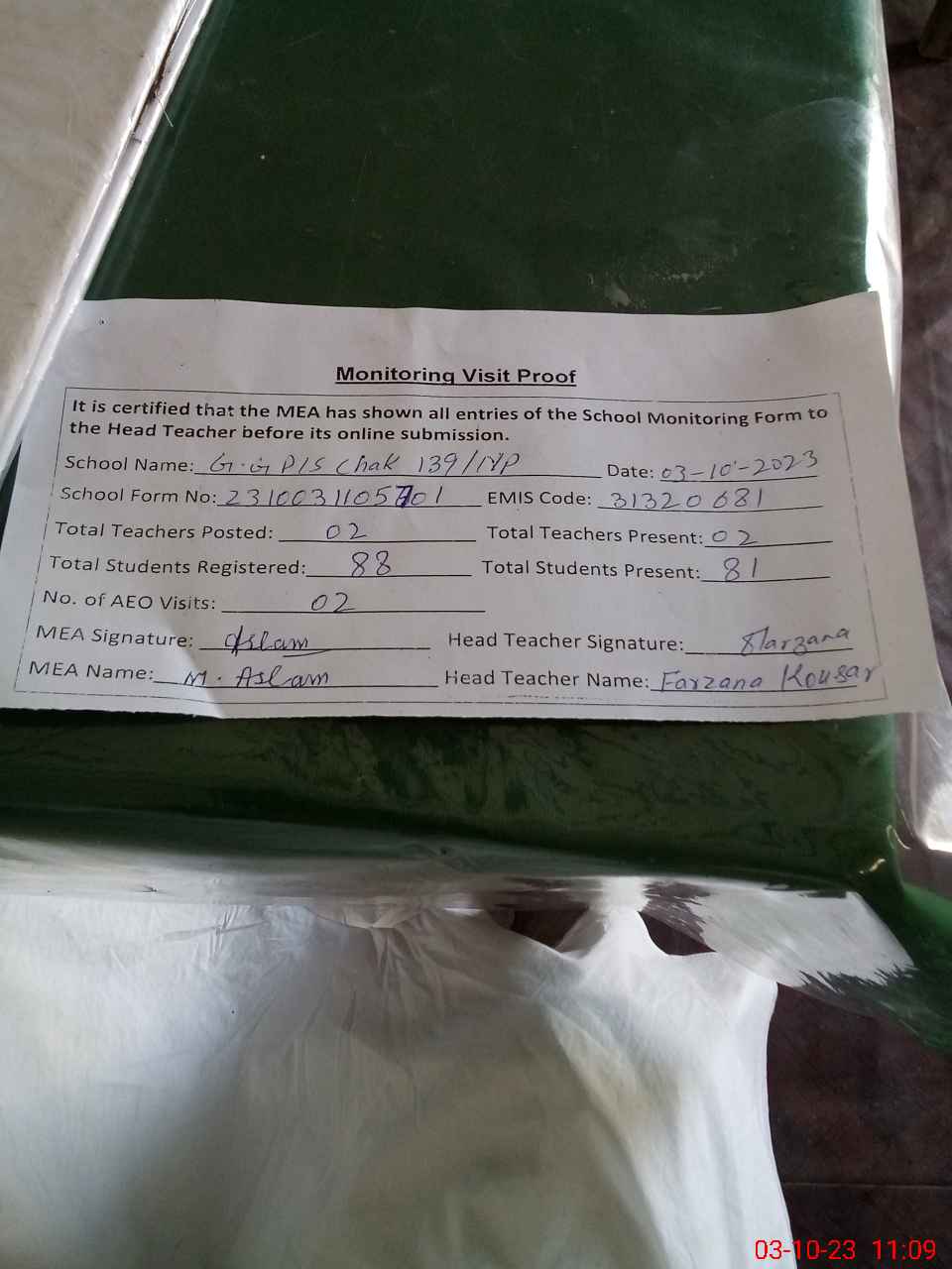 | EMIS Code: 31320681 | Name of School: GGPS CHAK 139/NP | |||