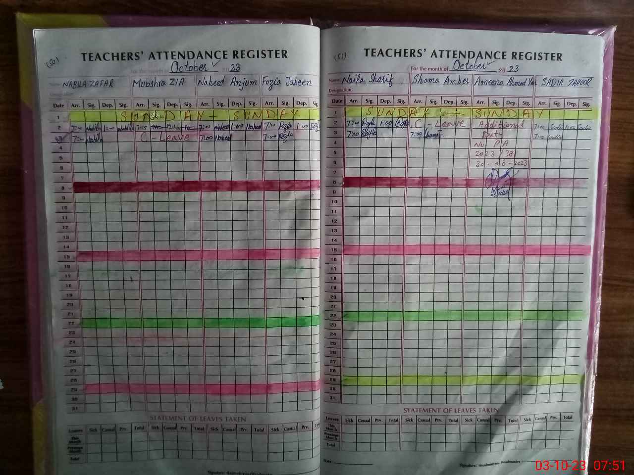 | Leave | Duty | Absent | Maternity | Medical | Ex- Pak |