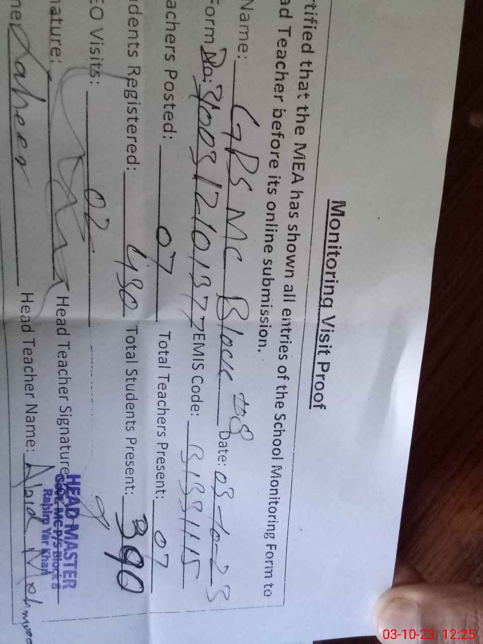 | EMIS Code: 31331115 | Name of School: GPS MC BLOCK NO. 8 THALI ROAD | |||