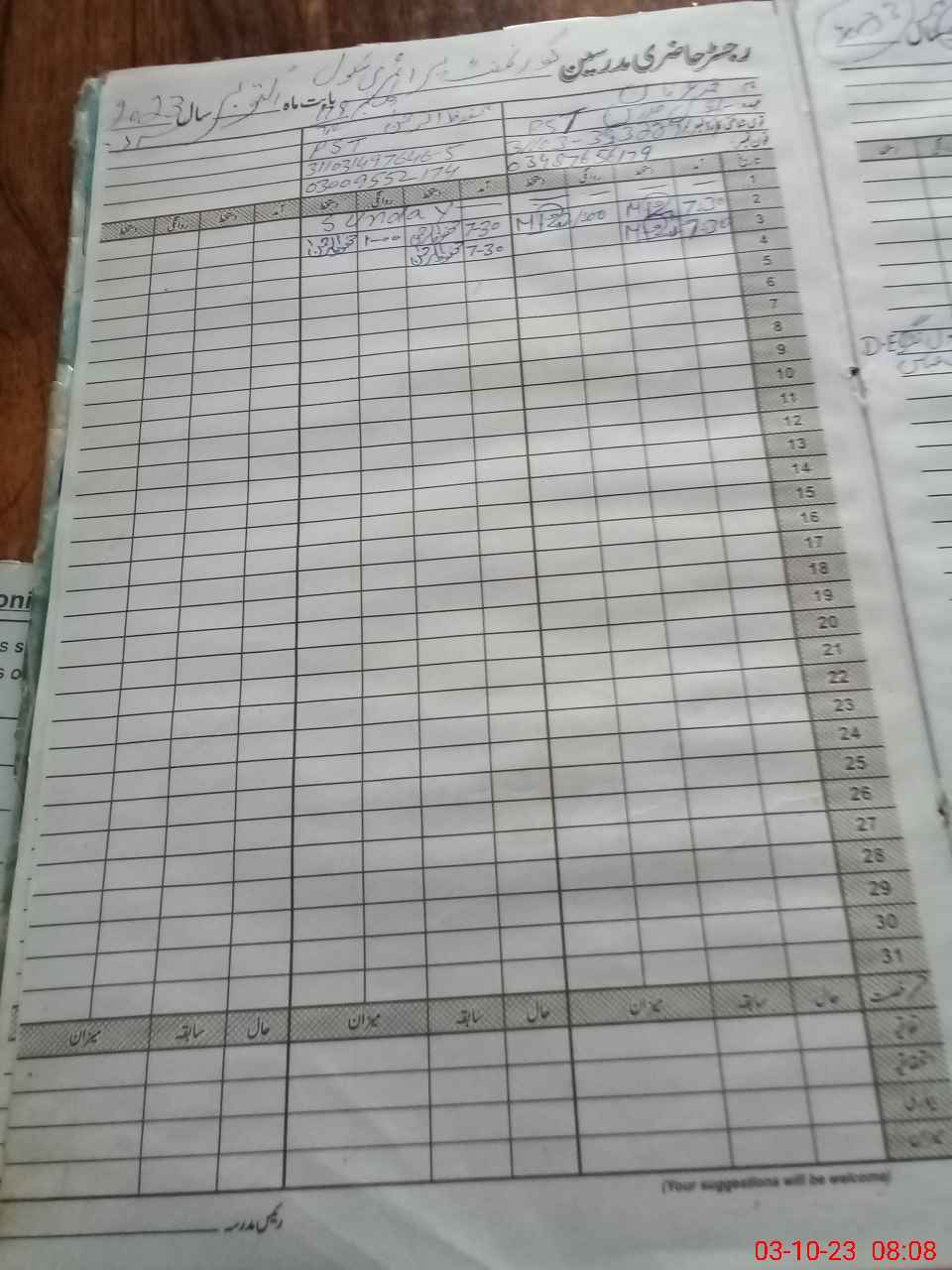 | Name: MIr**** Designation: (School Headmaster's/Headmistress's) E S E Sci Math Phone/Cell Number: 03**** |