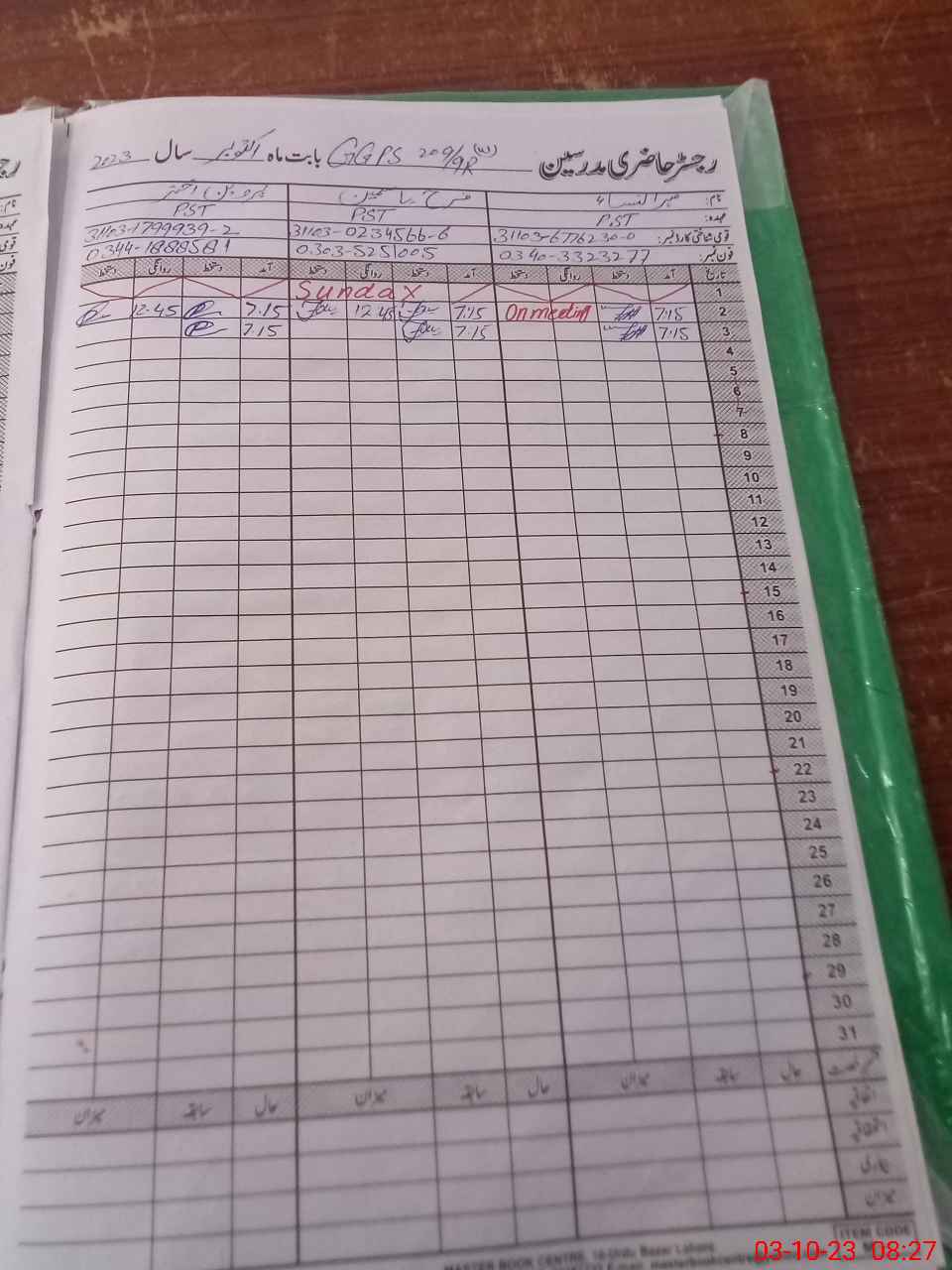 | EMIS Code: 31130297 | Name of School: GGPS CHAK NO 209/R WEST | |||
