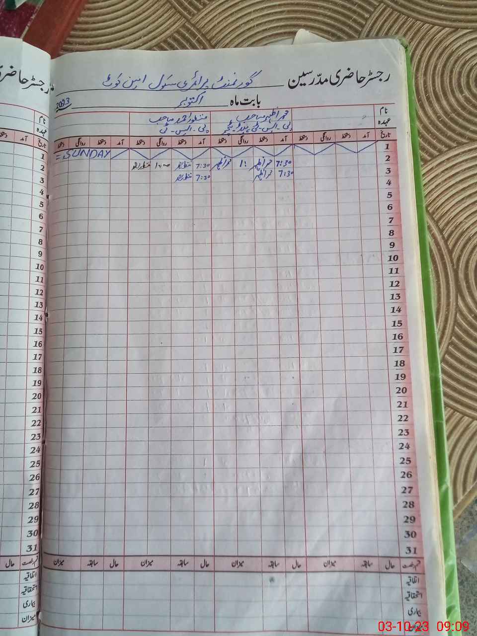 | Name: MU**** Az**** Designation: (School Headmaster's/Headmistress's) PST Phone/Cell Number: 03**** |