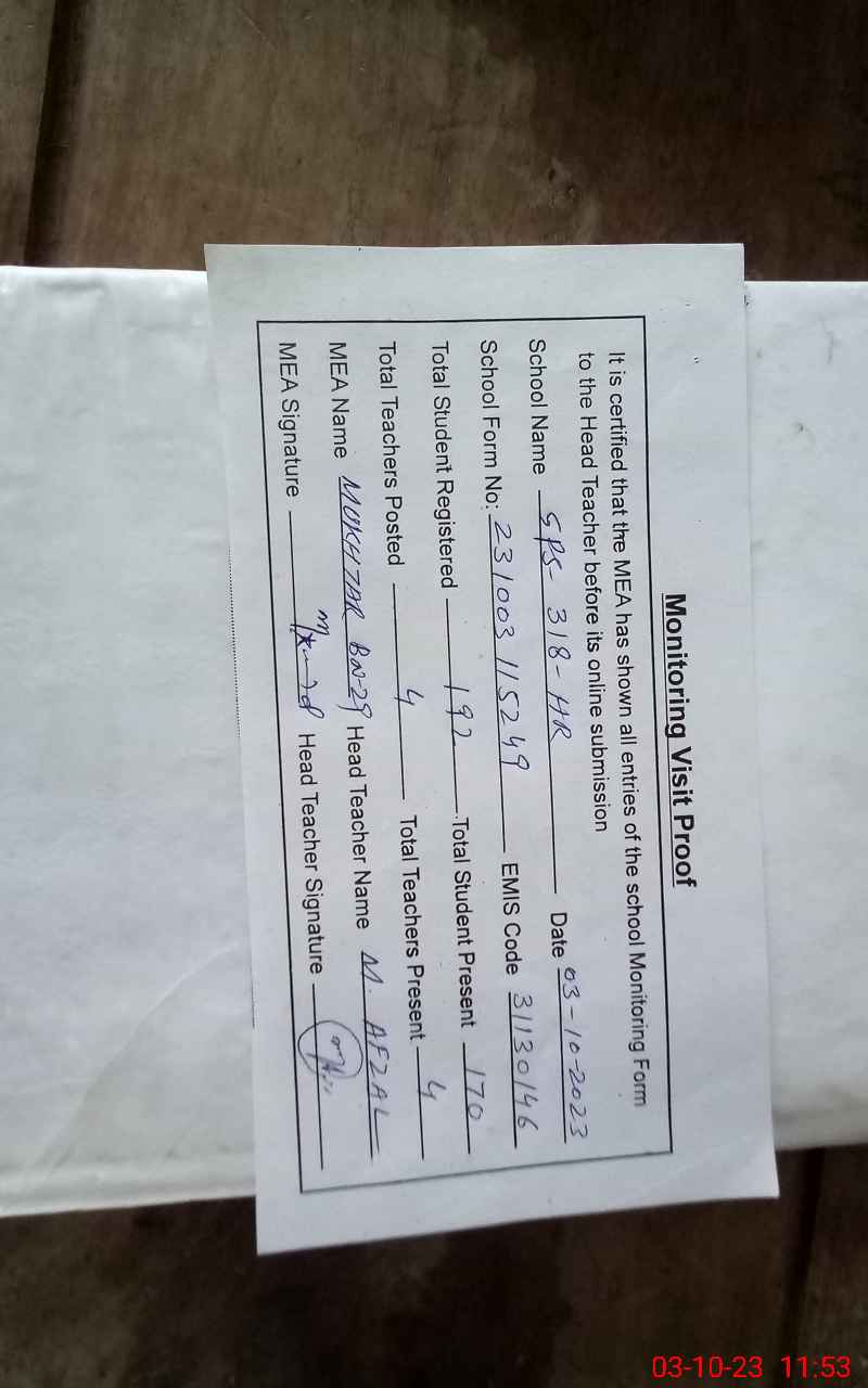 | EMIS Code: 31130146 | Name of School: GPS CHAK 318/HR | |||
