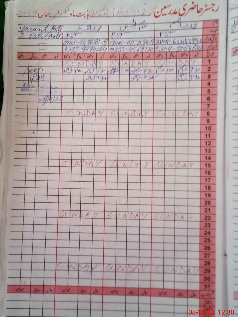 | CNIC | Full Name | Designation | R/C | Absence During Last Calender Month |