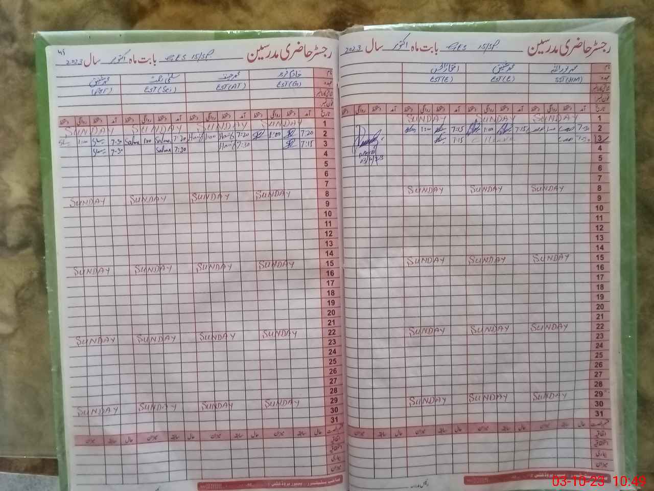 | Name: Kh**** Fa**** Designation: (School Headmaster's/Headmistress's) EST Phone/Cell Number: 03**** |