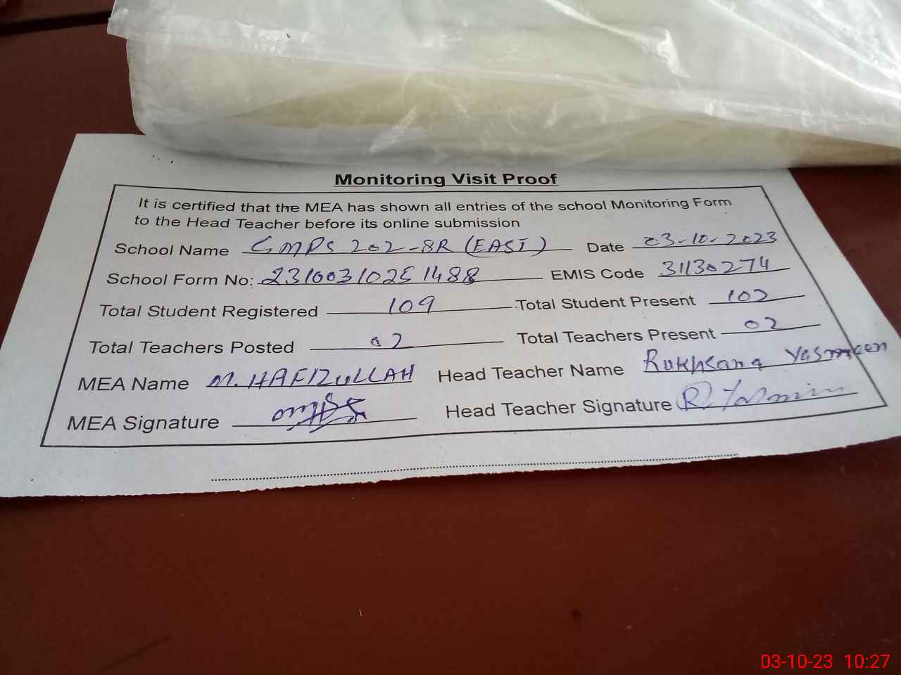 | EMIS Code: 31130274 | Name of School: GMPS CHAK NO 202/8-R EAST | |||
